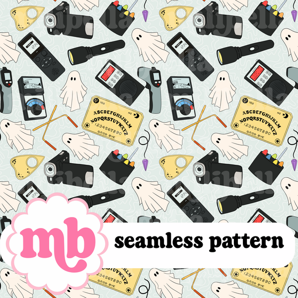 Ghost Hunting Halloween Seamless Pattern